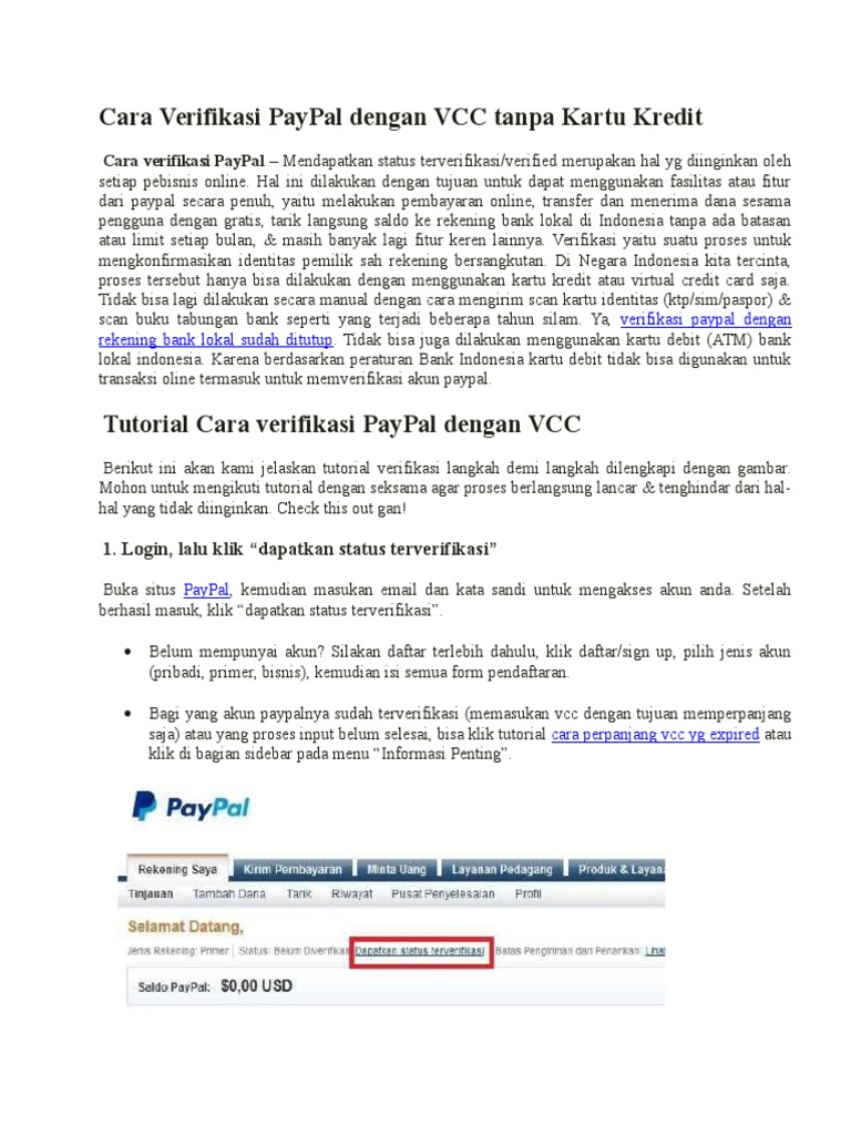 Namun tanpa kartu kredit pun itu bisa dilakukan dengan menggunakan jasa virtual credit card (vcc) yang demikian cara cepat daftar paypal indonesia untuk tahun 2019 ini, dan untuk mengisi saldo rekening. Pahami cara kerjanya via seoclerk.com. Paypal merupakan rekening online yang dapat digunakan untuk melakukan pengiriman dan penerimaan pembayaran. Untuk penerima dana pun dapat memperoleh dana dengan aman. Saya kan daftar paypal mas,terus dapet hadiah vcc buat verifikasi paypal nah saya verif sukses apakah bisa dipakai untuk transaksi?