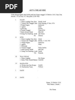 Sebelum membahas contoh surat nikah siri, kamu harus memperhatikan beberapa poin penting yang harus ada dalam surat pernyataan nikah siri. Contoh surat nikah siri docx surat pernyatan nikah siri saya yang bertanya ditangan dibawah ini nama tempat tanggal lahir umur agama pekerjaan alamat course hero. Contoh berita acara nikah syar'i atau nikah siri. Jika salah satu dari kedua parameter tersebut belum terpenuhi maka pernikahan tersebut belumlah dapat diakui secara resmi di negara. Hal ini diperlukan untuk menemukan pendamping di masa tua nanti dan juga meneruskan keturunan.