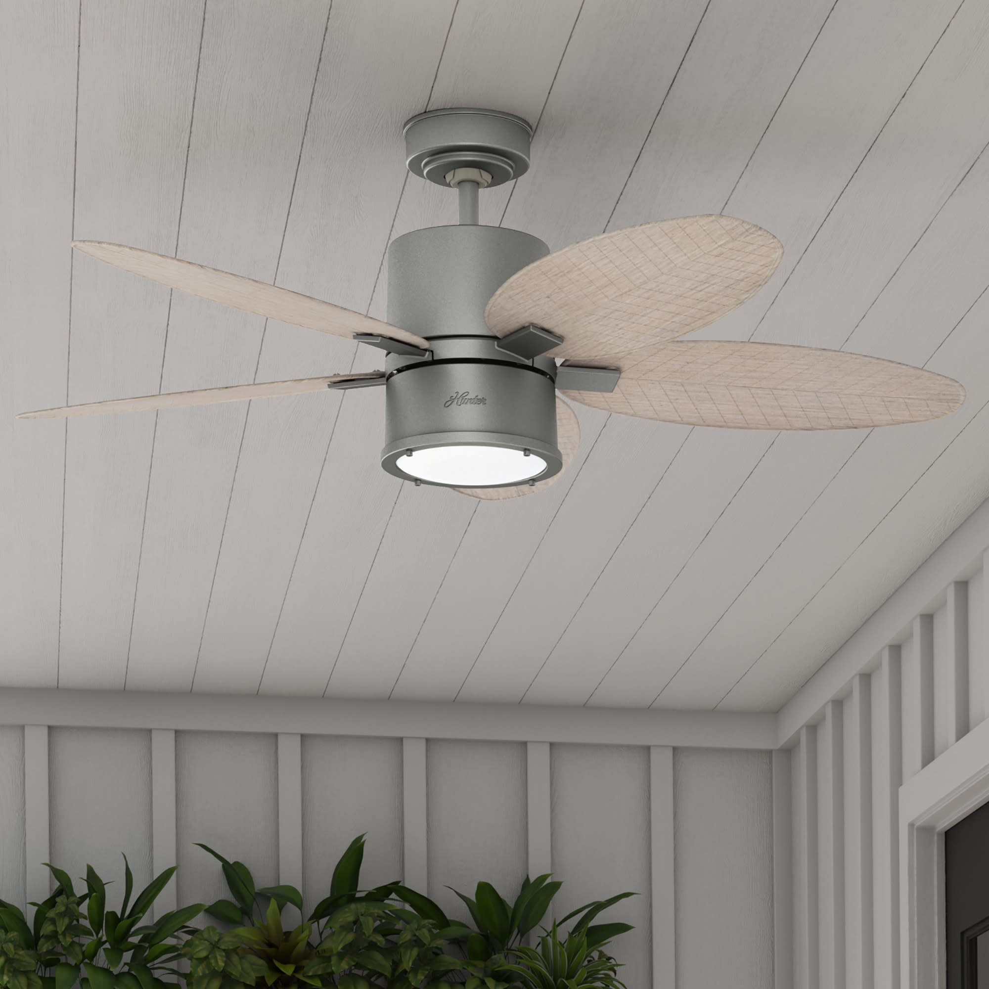 (6) total ratings 6, $107.49 new. By home decorators collection (1218) maverick 60 in. Hunter's damp rated ceiling fans are engineered to withstand the outdoor elements without sacrificing designer style and powerful airflow. Hunter fan 52 inch contemporary matte black ceiling fan with light kit, 5 blade. The unique pattern on the blades make a statement in tropical and bohemian styled rooms.